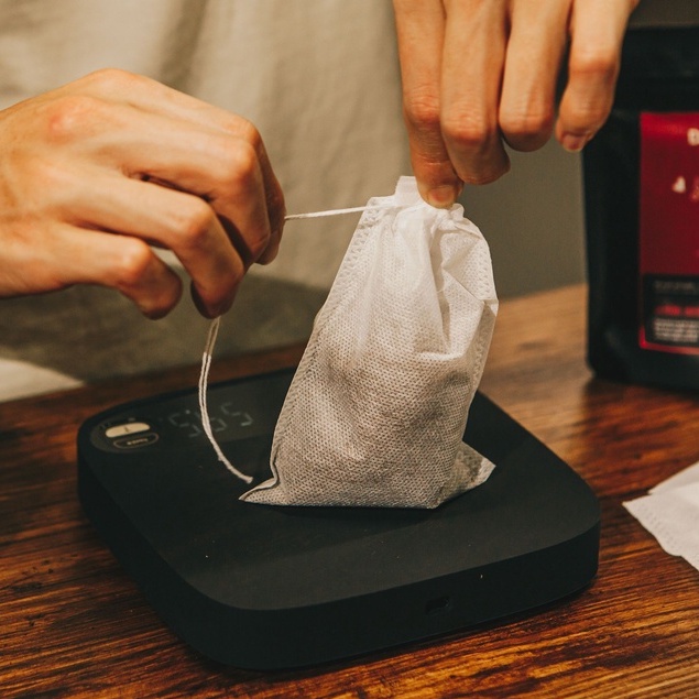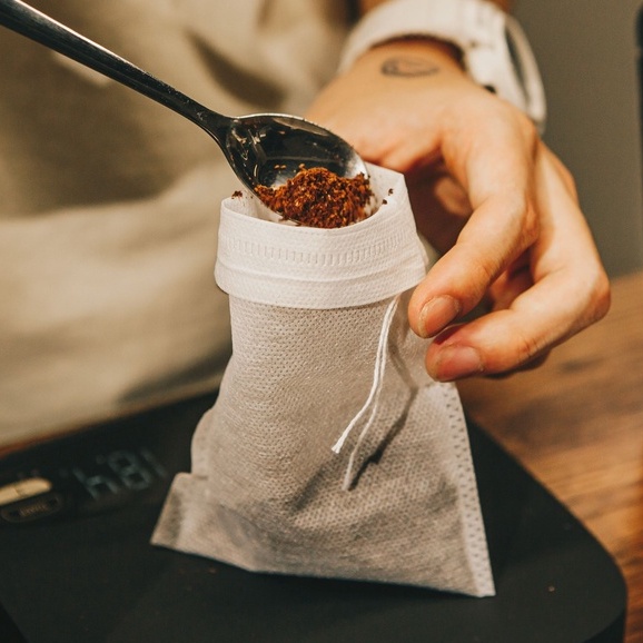 - Cho lượng cà phê vào túi theo nhu cầu sử dụng