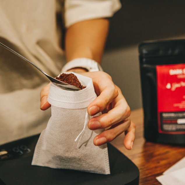 - Cho lượng cà phê vào túi theo nhu cầu sử dụngg