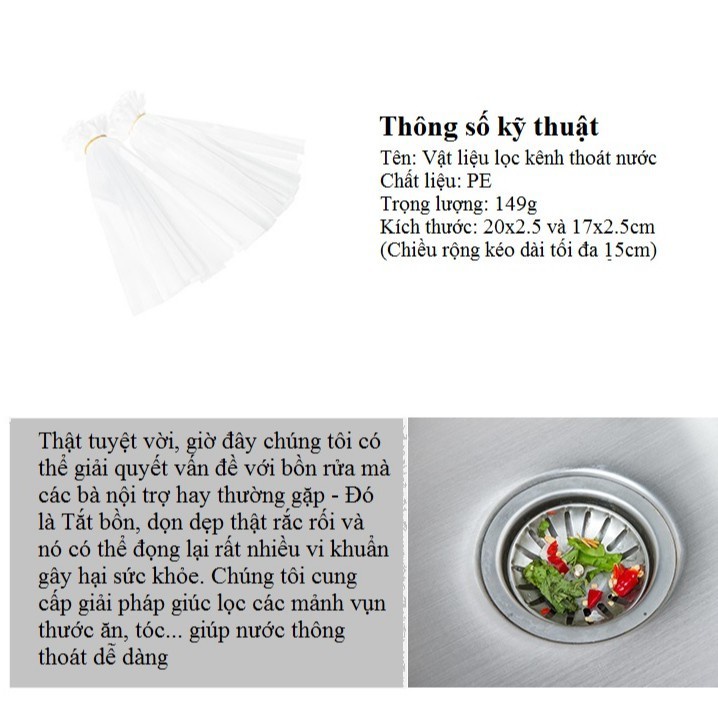 SET 30 TÚI LỌC RÁC BỒN RỬA BÁTTại sao lại nói là ƯU VIỆT: lọc rác không chun tạo độ bồng, làm rác được đẩy lên giúp thoát nước nhanh gấp 2 lần so với loại chun
