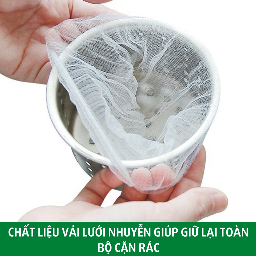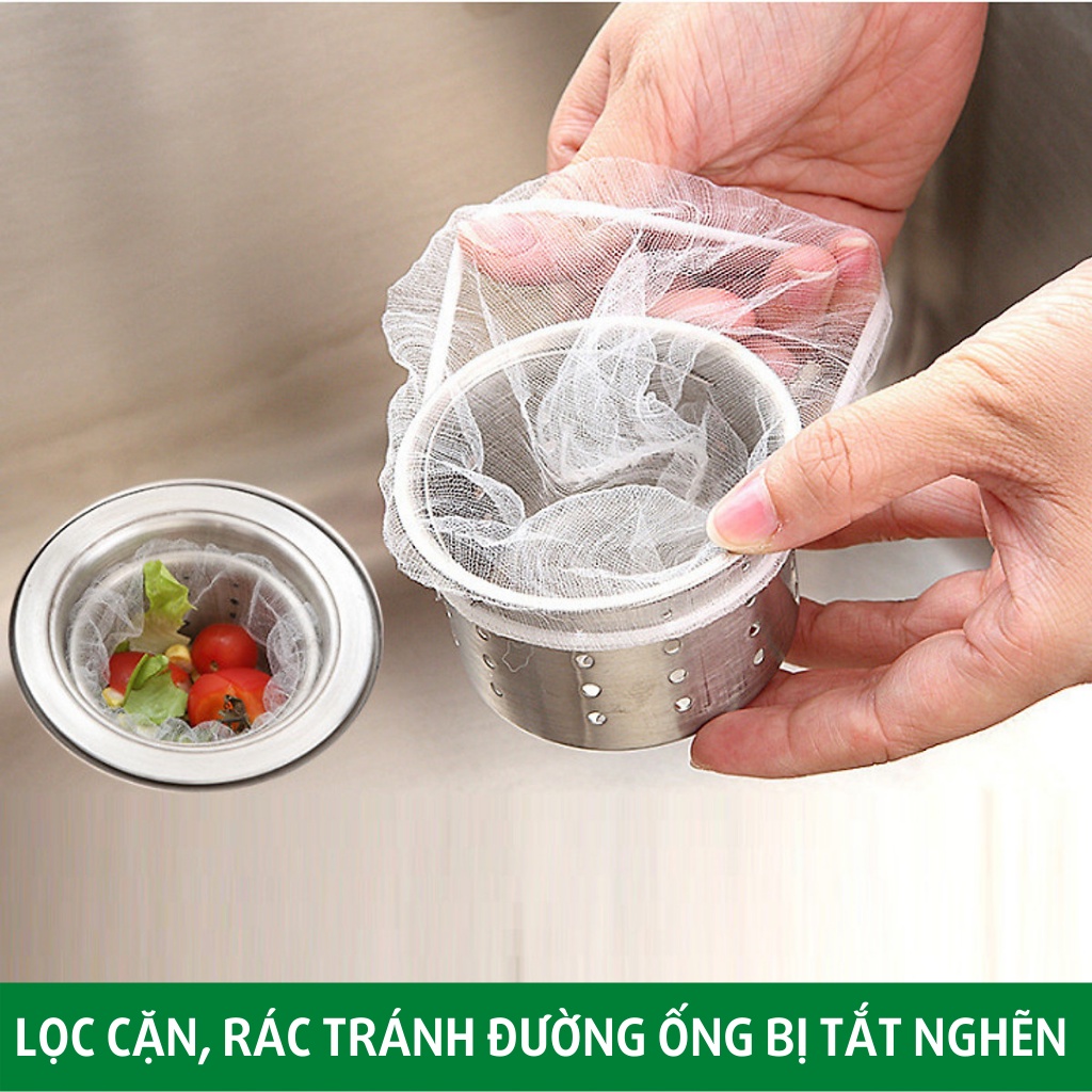 Túi lọc rác bồn rửa chén bát túi lưới chặn rácTúi lọc bồn rửa chén là đồ dùng không thể thiếu trong mỗi căn bếp trong gia đình, dùng túi lưới lọc rác kết hợp với miếng lọc inox có săn trong bồn sẽ giúp bồn rửa luôn sạch sẽ.