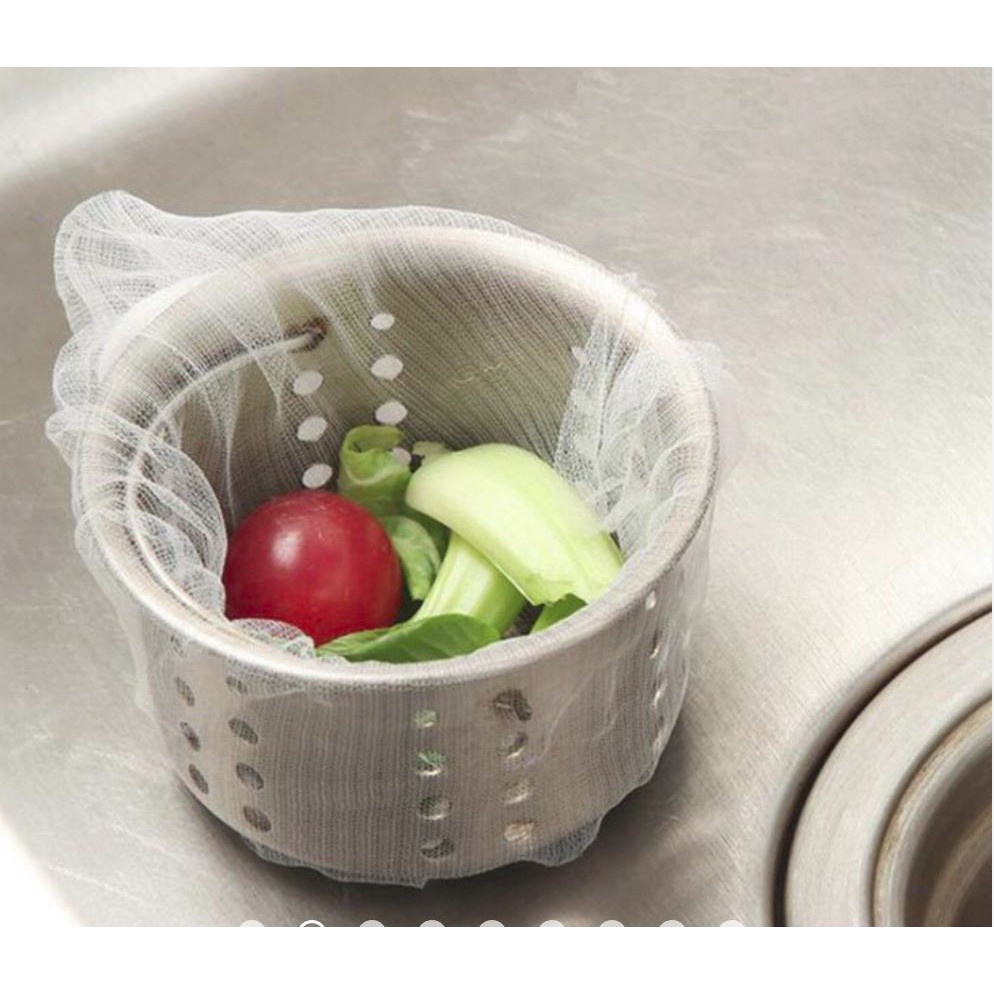 ✔️Kích thước: 9cm x 9cm. Túi có độ co giãn, dễ dàng lắp vào khay lọc của bồn rửa. Phù hợp với nhiều loại bồn rửa chén khác nhau.