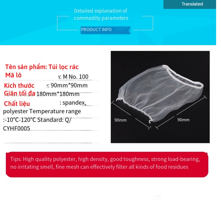 THÔNG SỐ KỸ THUẬT: Túi lọc rác, túi lọc rác bồn rửa chén,túi đựng rác bồn rửa bát