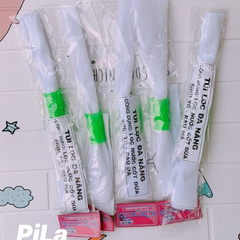 - Túi lọc bằng lưới, có khả năng lọc sạch bã từ thực phẩm xay nhuyễn lấy nước, lấy cốt: nước cốt dừa, rau má, sữa đậu phộng, đậu xanh…