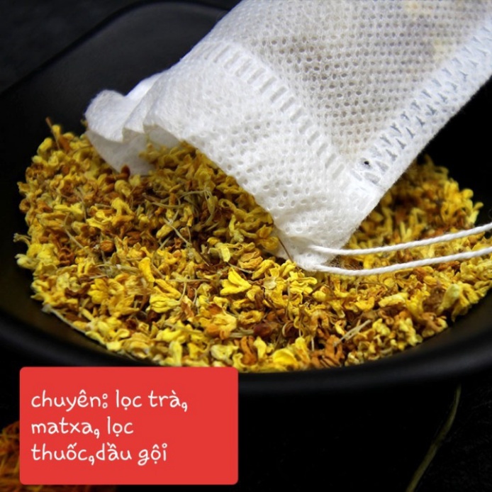 - Công dụng: Đựng được nhiều thứ như thuốc xông, thuốc ngâm chân, nấu nước gội đầu, đựng thuốc bắc, lọc gia vị nồi lẩu, túi lọc cafe, túi lọc đa năng, bột matcha túi lọc...