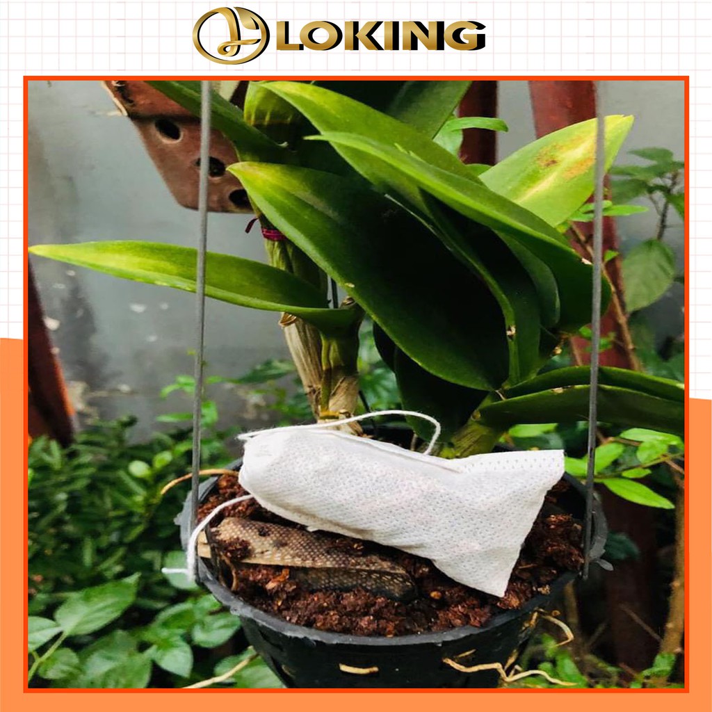- Công dụng: túi đựng phân tan chậm, hoặc các loại phân nhuyễn không bị rơi ra ngoài rất tiện lợi vì có dây rút nhanh gọn các bạn có thể dùng bón gốc hoặc treo trên giò lan tiết kiệm thời gian và chi phí vì có thể tái sử dụng lại..
