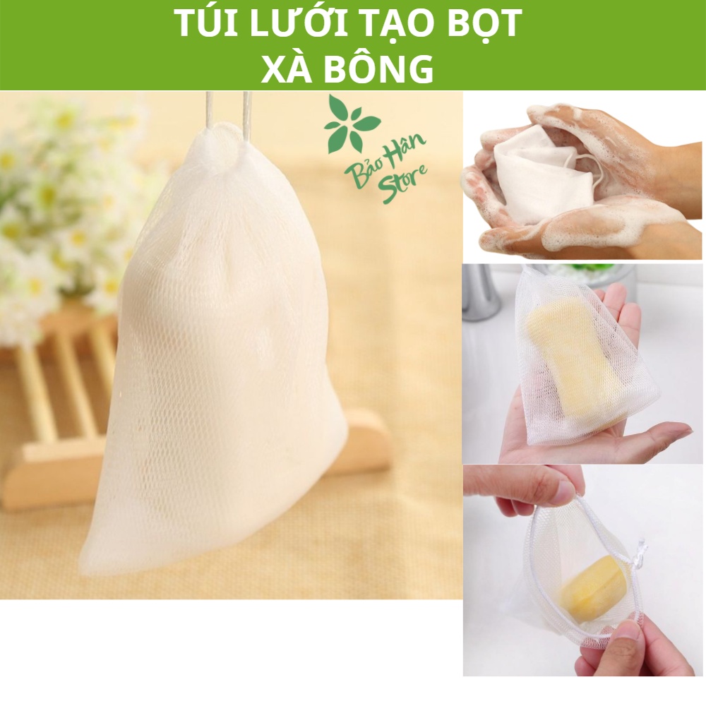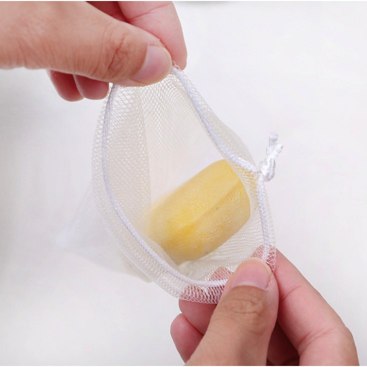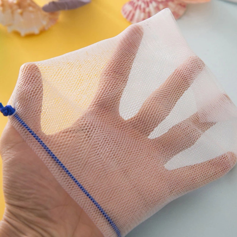 Giới thiệu sản phẩm Túi Lưới Đựng Xà Bông Tắm Tạo Bọt Tiện Lợi, Túi Tạo Bọt Có Dây Rút Loại 2 Lớp Dày Dặn- Lưới dùng để tạo bọt cho xà phòng bánh, xà phòng để tắm hoặc rửa mặt.