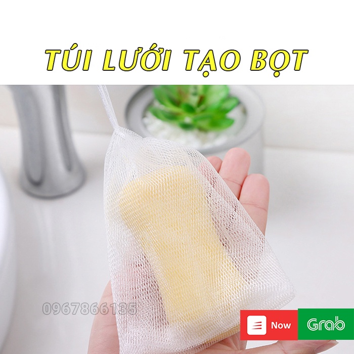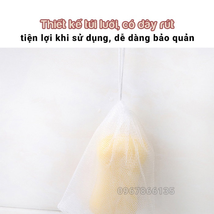 Túi lưới tạo bọt xà phòng bánh dày 2 lớp, có dây rút, dây nhiều màu sắc, bền đẹp và tiện lợi. Túi lưới còn có thể dùng tắm trực tiếp thay thế cho bông tắm tạo bọt, có thể tắm trực tiếp không cần tạo bọt bằng bồn tắm➡️ ƯU ĐIỂM: