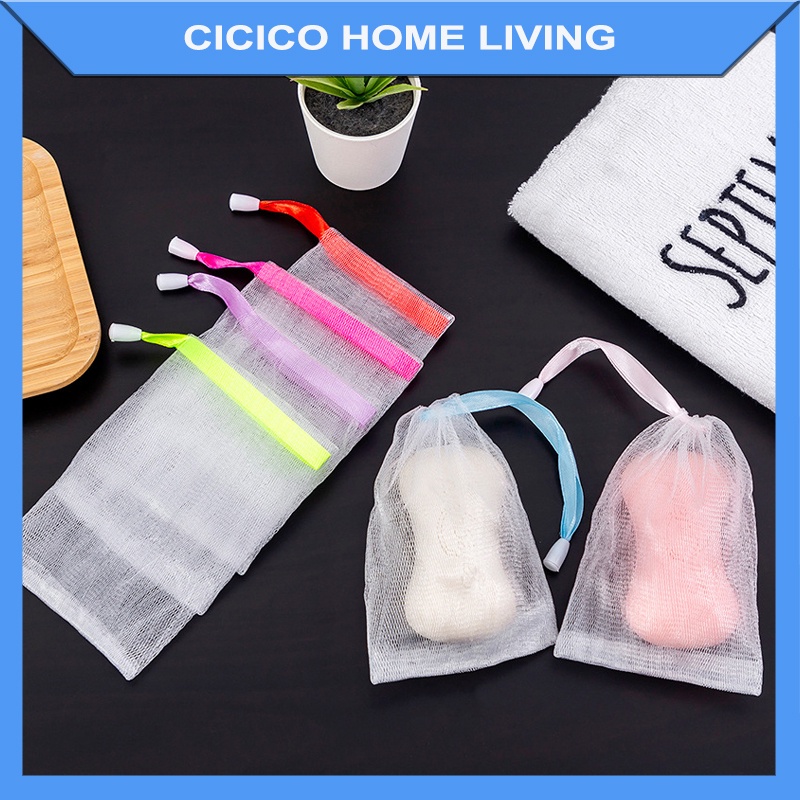 Nhà cửa & Đời sống > Dụng cụ nhà bếp > Khác || Túi lưới đựng xà phòng Cicico A165 túi lưới tạo bọt xà phòng kháng khuẩn có dây rút tiện dụng chống tuột tayCòn hàng
