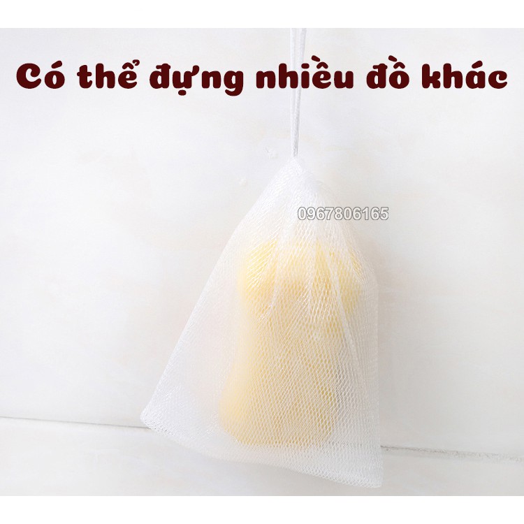 Túi dùng đựng xà phòng treo giúp cho xà phòng luôn khô ráo, do đó tránh hiện tượng là mềm xà phòng. Sử dụng túi lưới tạo bọt giúp tạo bọt xà phòng bánh (xà phòng cục) một cách hiệu quả, tạo ra được nhiều bọt hơn so với tạo bọt bằng tay..☑️ THÔNG TIN SẢN PHẨM: