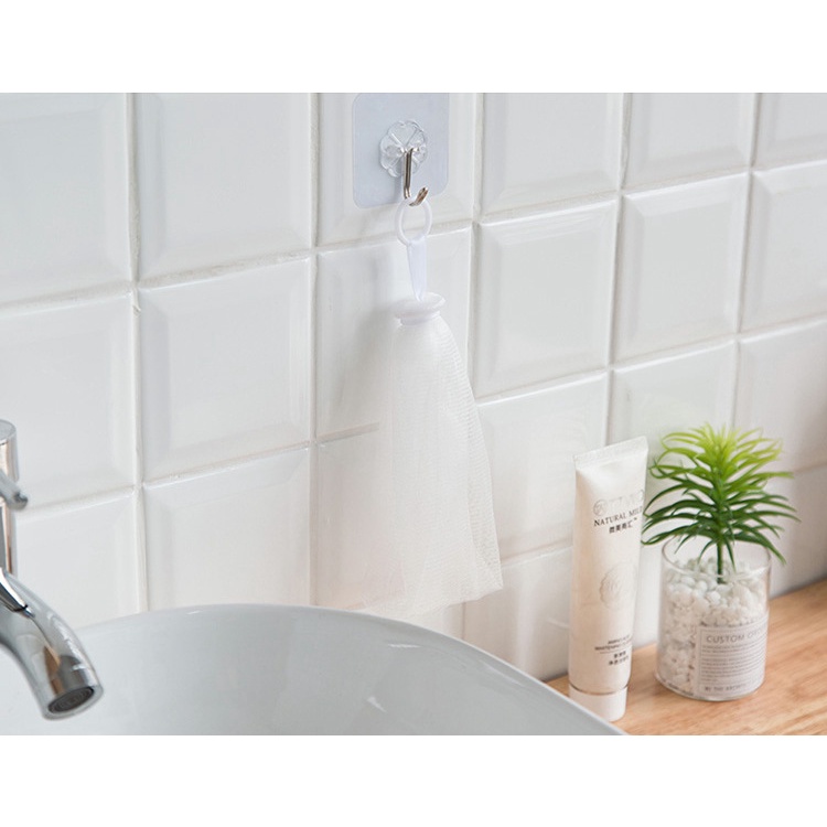 - Túi lưới tạo bọt có dây treo tiện lợi, giữ xà phòng khô ráo, do đó tránh hiện tượng là mềm xà phòng.