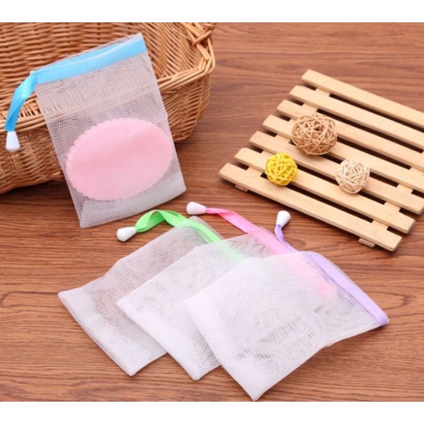 Túi Lưới Đựng Xà Phòng Tạo Bọt Tiện Lợi, Có Dây Rút Kích Thước 15x9*** TÚI LƯỚI 15*9 CM SẼ PHÙ HỢP VỚI XÀ BÔNG TRÊN 80G TRỞ LÊN NHƯ XÀ BÔNG SINH DƯỢC