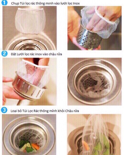 – Sản phẩm được làm bằng chất liệu vải lưới giúp thoát nước và giữ lại tất cả rác thừa lại ngăn chặn gây tắc đường nước