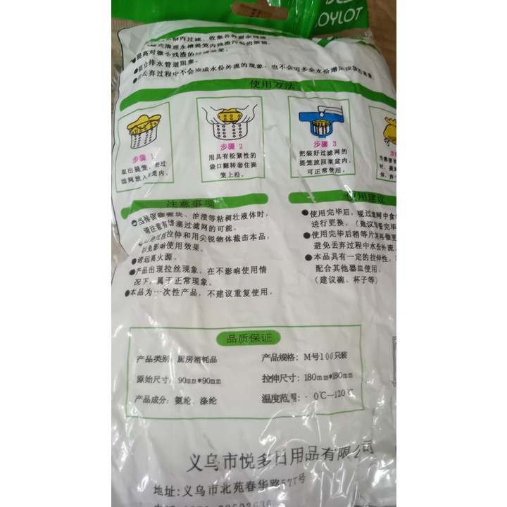 - Bịch gồm 100 túi lưới lọc rác cho bồn rửa chén