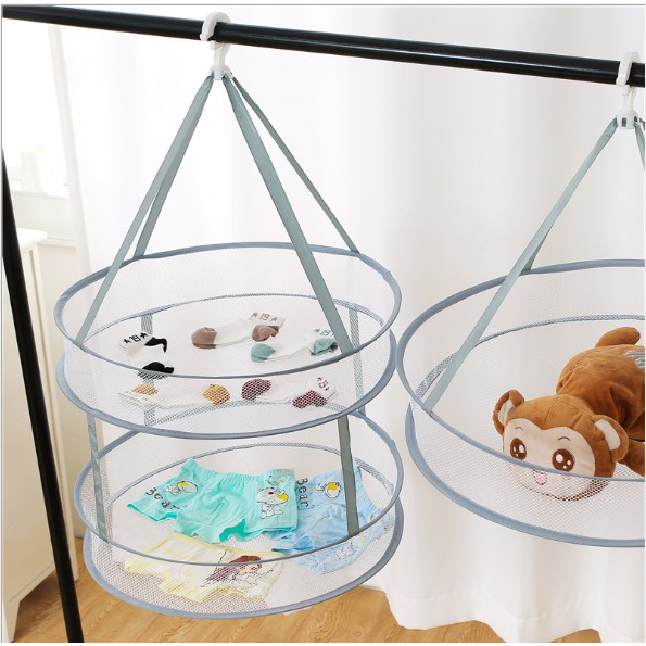 Giỏ lưới phơi đồ áo lót tất gấu bông chống gió bay 2 tầng gấp gọn được đa năng tiện dụng cho gia đình