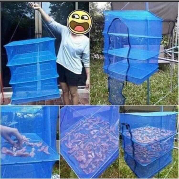 Túi Lưới Phơi Thực Phẩm 3 Tầng Lưới Phơi Cá, Củ, Quả Không Dính CátLồng lưới treo 3 tầng để phơi cá khô có thể xếp gọn