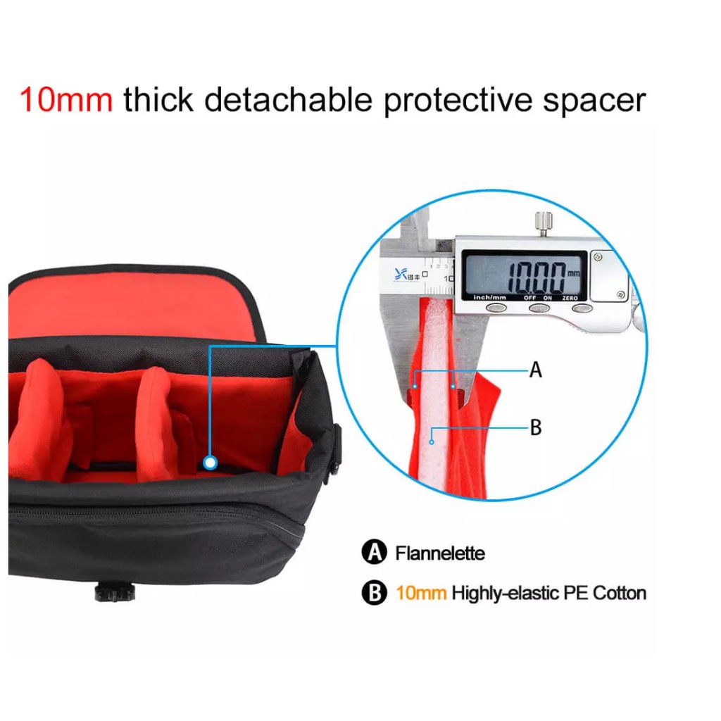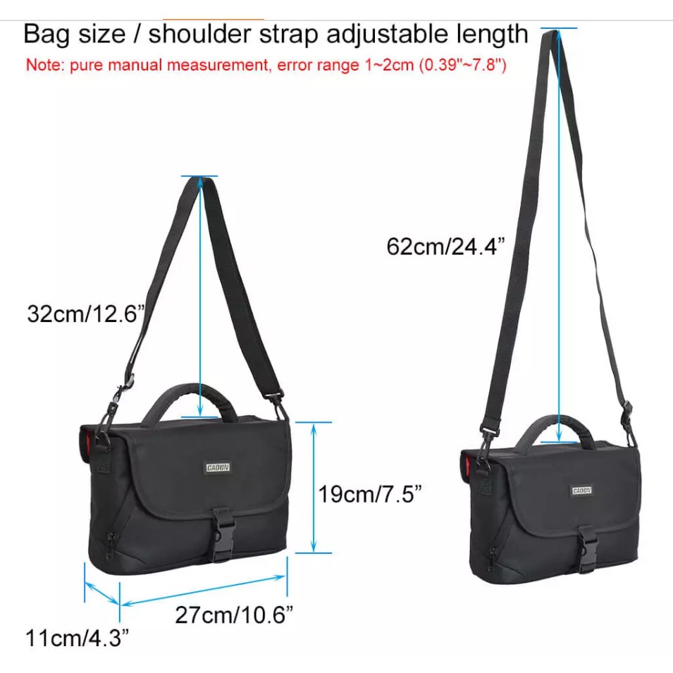 - Dây đeo vai có thể điều chỉnh để phù hợp với nhiều độ cao và mang theo sở thích.- Bạn có thể đặt một camera và 2 ống kính trong chiếc túi này.