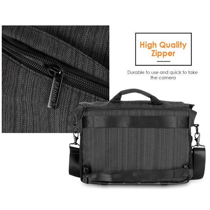 Khả năng chống nước chất liệu bên ngoài và khóa kéo bền bỉ để giữ máy ảnh và các phụ kiện của bạn khô và an toàn khỏi bụi bẩn và đột ngột chày sước, mài mòn cao và chống rách.