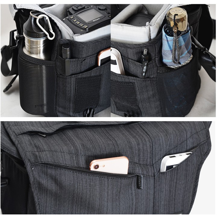 Có thể điều chỉnh nội bộ chia giữ camera thêm chắc chắn và giữ ống kính ngoài; thêm Phụ kiện túi cho chứa pin, dây, thẻ nhớ, bộ lọc hoặc Nắp đậy ống kính; mịn nhanh chóng truy cập vào máy ảnh lưu trữ.