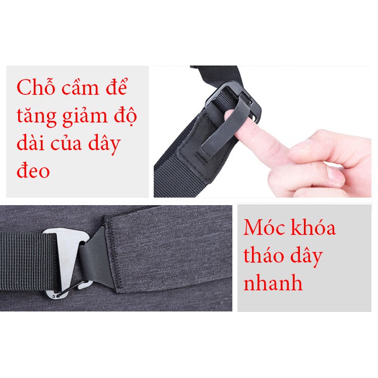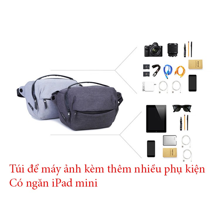 Túi có thiết kế kiểu dáng thời trang, bắt mắt. Có thể đeo chéo hoặc đeo bao tử.Túi nhỏ gọn, có thể để được 1 body kèm lens zoom dài hoặc body kèm lens zoom tầm trung kèm thêm lens và phụ kiện, hoặc body kèm lens zoom tầm trung kèm thêm đèn flash. Túi có ngăn để iPad mini riêng biệt.