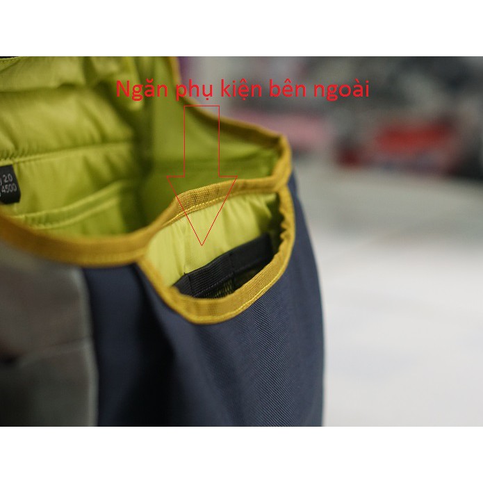 ngăn lưới dưới nắp túi phía trước, với ngăn tích hợp cho thẻ nhớ.
