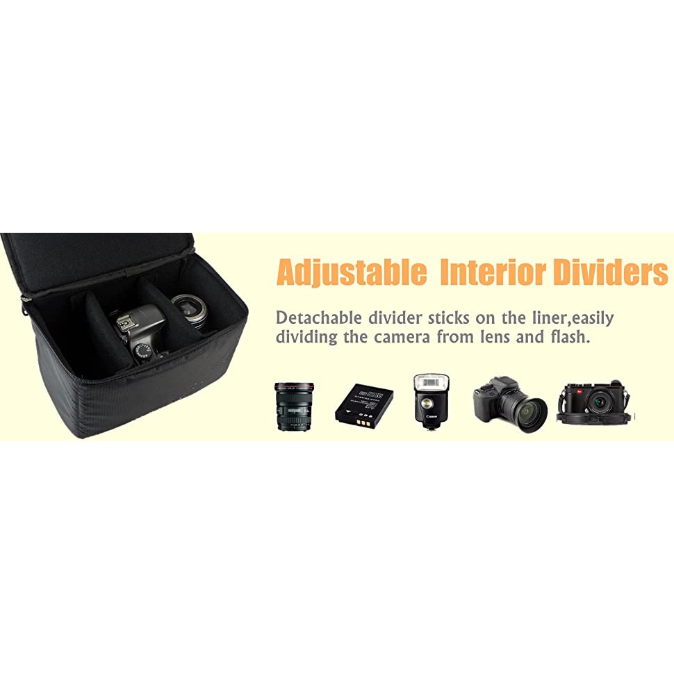 Được làm thủ công bằng nylon không thấm nước mật độ cao cao cấp,Kích thước bên ngoài: 13 "(H) x 5" (W) x 9 "(H), Có thể chứa toàn bộ thân máy DSLR có gắn ống kính, 2-3 ống kính, đèn flash và các phụ kiện khác