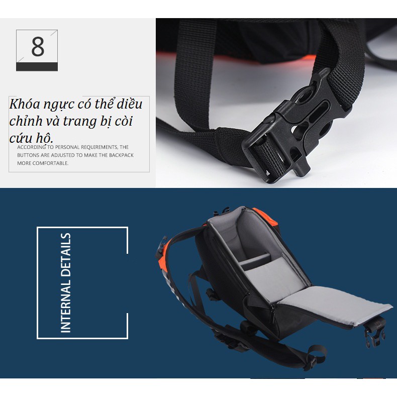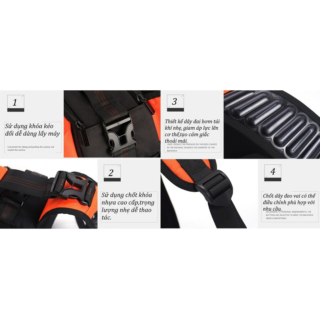 Bên ngoài, túi được làm từ chất liệu vải Polyeste Oxford giúp chống thấm nước khá tốt. Bên trong túi được chia thành các ngăn khác nhau để đựng thân máy, ống kính và 1 số phụ kiện khác. Túi được bao bọc bởi một lớp xốp dày giúp chống sốc cho các thiết bị một cách hiệu quả.