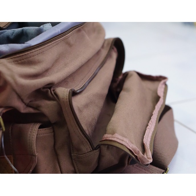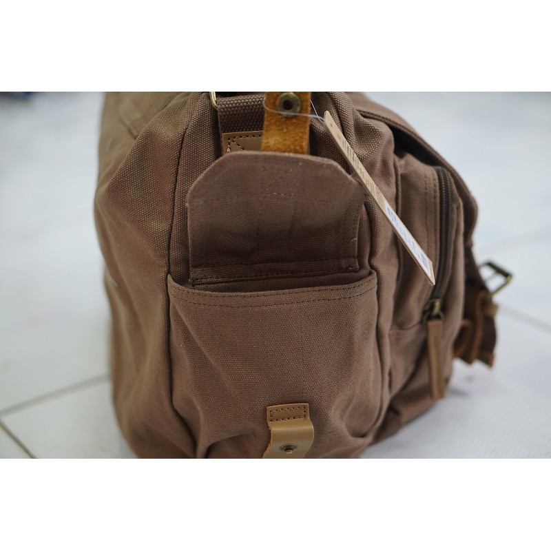 Vải may túi là loại vải Kaki dày, với các đường dệt khít nhau chứ không hề thưa thớt như các loại vải thông thường. Vải chống thấm nước và không bị sờn màu trong quá trình sử dụng.- Phần dây đeo được may theo dạng bản lớn, giúp túi được chắc chắn hơn và tạo cảm giác thoải mái khi sử dụng lâu dài.