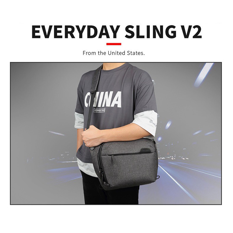 Túi máy ảnh Xiu-Jian Kiểu dáng Peak Design Everyday Sling v2 6L )Túi được thiêt kế kiêu dáng nhỏ và nhẹ túi máy ảnh xiu-jian Sling V2 giờ đây có đến 3 kích thước gồm 3L, 6L, và 10L, do đó bạn có thể chọn được bạn đồng hành hoàn hảo, để mang theo thiết bị nhiếp ảnh bên mình thuận tiện và đơn giản nhất. Túi có kích thước khác nhau phù hợp với nhiều cách sắp xếp sáng tạo, từ máy ảnh rangefinder đến DSLR chuyên nghiệp, ống kính và laptop. Dây đeo chéo lót đệm trang bị khóa chỉnh nhanh cho phép bạn nới dây khi cần lấy đồ và siết dây khi leo núi hoặc đạp xe. Khóa kéo mới UltraZip kháng thời tiết giúp mở rộng và nhanh túi, các ngăn FlexFold cho phép tùy ý sắp xếp và bảo vệ tức thời. Các túi bên trong có thể kéo giãn để đựng phụ kiện nhỏ, có ngăn đựng tablet riêng (dành cho loại 6L và 10L). Chất liệu bên ngoài làm từ 400D chống thấm nước an toàn nước giúp bảo tốt cho thiết bị bên trong.