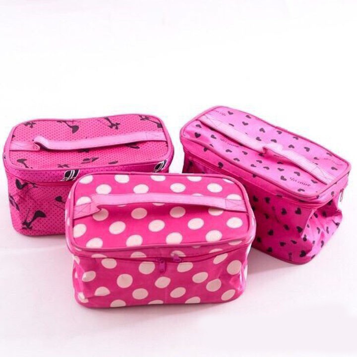 ♻ Thông Tin Sản Phẩm: ✔ Túi Mỹ Phẩm Hoa Văn Có QuaiChiếc túi nhỏ xinh giúp bạn đựng các đồ lặt vặt. Thật tiện lợi khi mang theo. Hiện còn 3 mẫu như ảnh số 2. Hồng chấm bi, hồng chấm tim và hông in đôi giày. hết màu đen khách nhé.