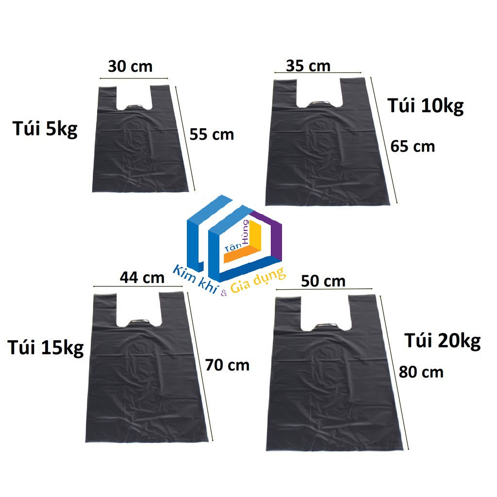 Túi Đựng Rác 5kg : Túi đựng được trọng lượng 5kg – Kích thước túi: Ngang 30 x Dài 50(khoảng 85 - 90 cái)