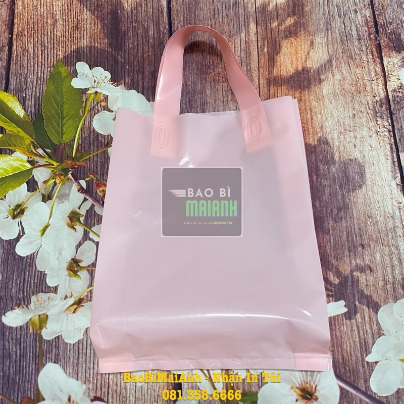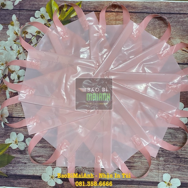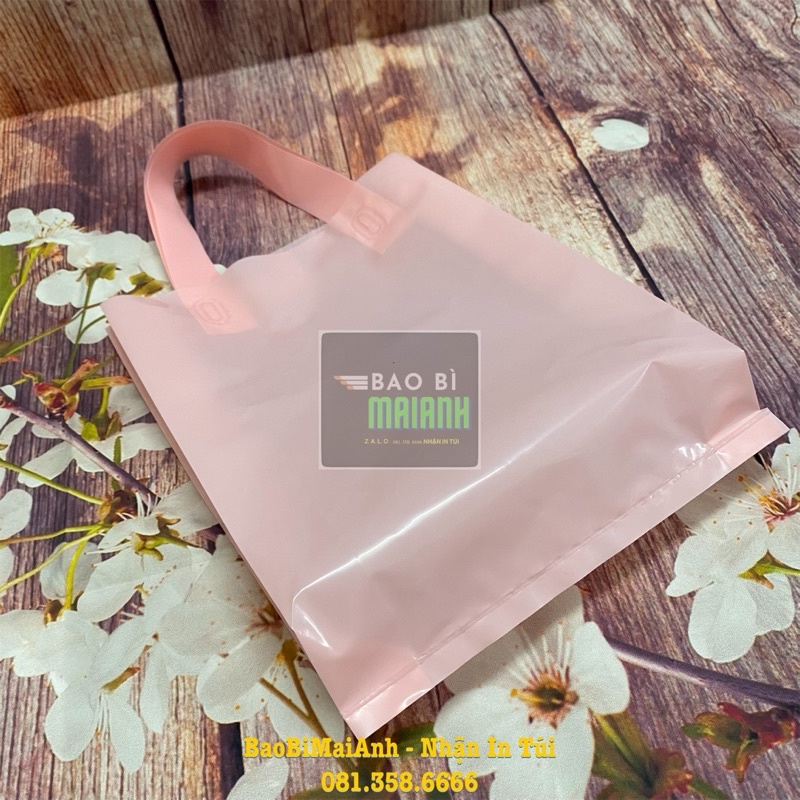 Giới thiệu TÚI NILONG PE DẺO ÉP QUAI túi Pe hồng pastel loại bóng dẻo dai, quai sách bền và chắc chắn.