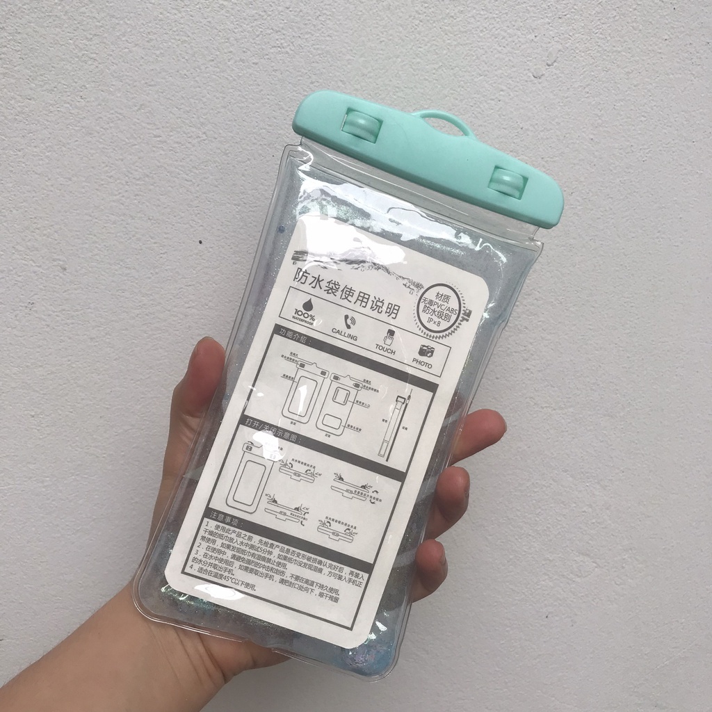 - Túi đựng điện thoại chống nước có thiết kế khóa gài kín đáo, ngăn bụi bẩn, trầy xước do va chạm và đặc biệt chống thấm tốt, an toàn ngay cả trong môi trường nước.- Túi được làm từ chất liệu nhựa dẻo trong suốt, có tính năng cảm ứng nhiệt, giúp người dùng có thể sử dụng điện thoại để nghe, nhận cuộc gọi cũng như chụp ảnh dưới nước.