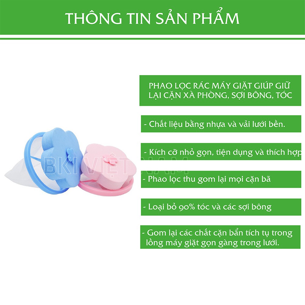 💐Phao lọc bụi bẩn máy giặt dành cho máy giặt là túi để lọc các bông hoặc xơ vải của quần áo khi giặt đổ, tránh không cho các sợi vải đi xuống đường thoát nước làm nghẹt máy, duy trì tuổi thọ máy giặt lâu bền hơn.THÔNG TIN CHI TIẾT: