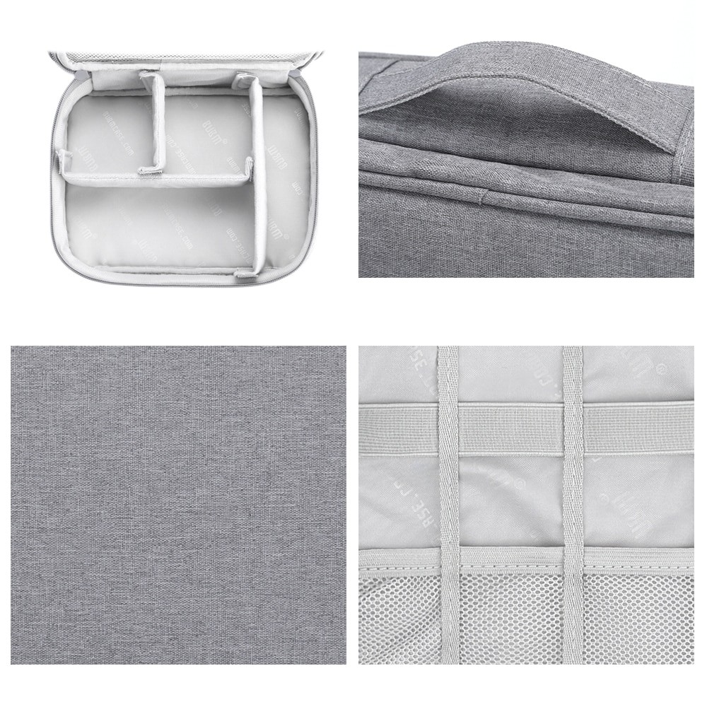 Túi được làm bằng chất liệu vải cao cấp dày dặn, chống thấm tốt, bên trong túi có lớp một lớp đệm xốp chống sốc cho các phụ kiện. Với đường chỉ may đẹp, tỉ mỉ, túi còn trang bị khóa kéo 2 chiều và 1 quai xách tiện dụng giúp bạn có thể mang đi mọi nơi.