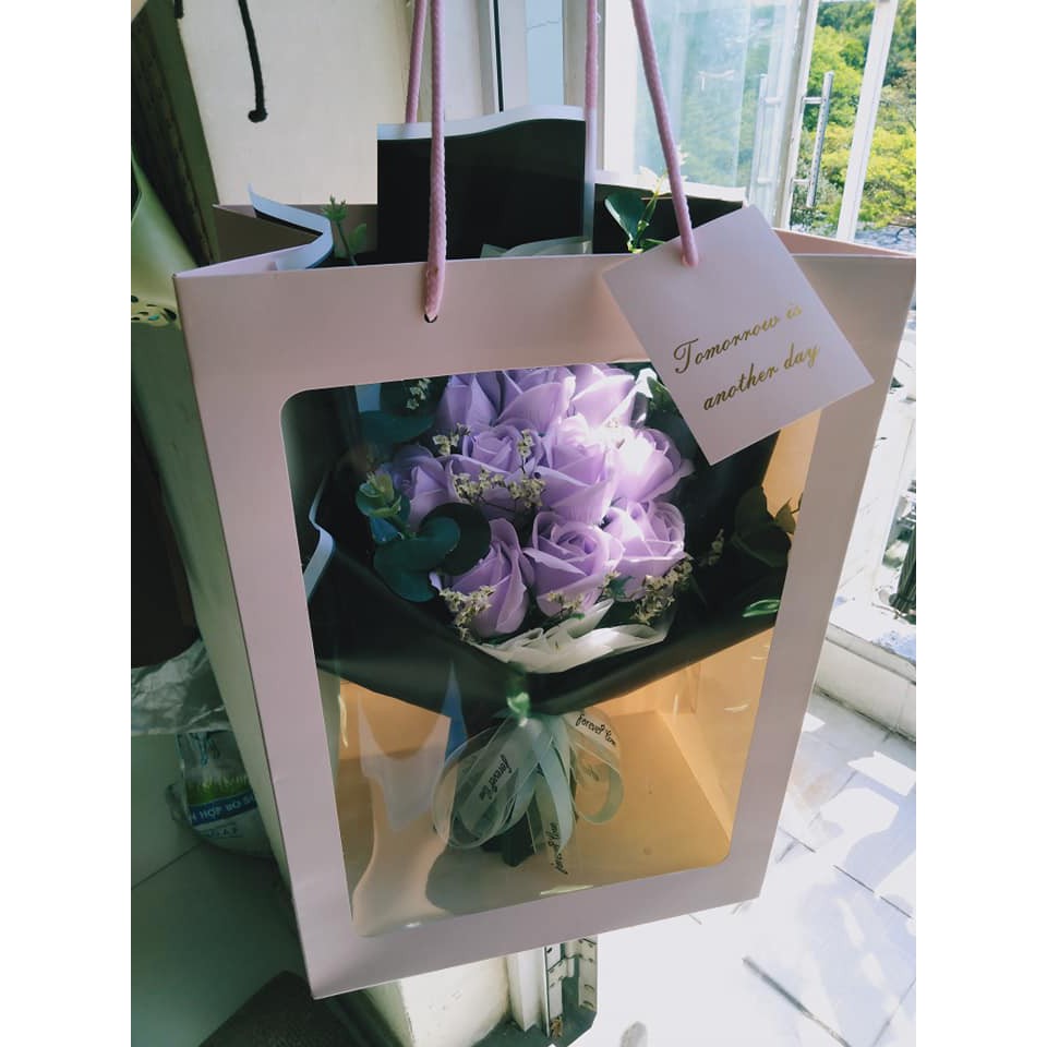 Nhà cửa & Đời sống > Trang trí nhà cửa > Hoa trang trí || Túi quà tặng gồm bó hoa hồng tím sáp thơm 10 hoa kèm thiệp quà tặng 20/10 8/3 14/2 sinh nhật [giao nhanh HCM]Còn hàng