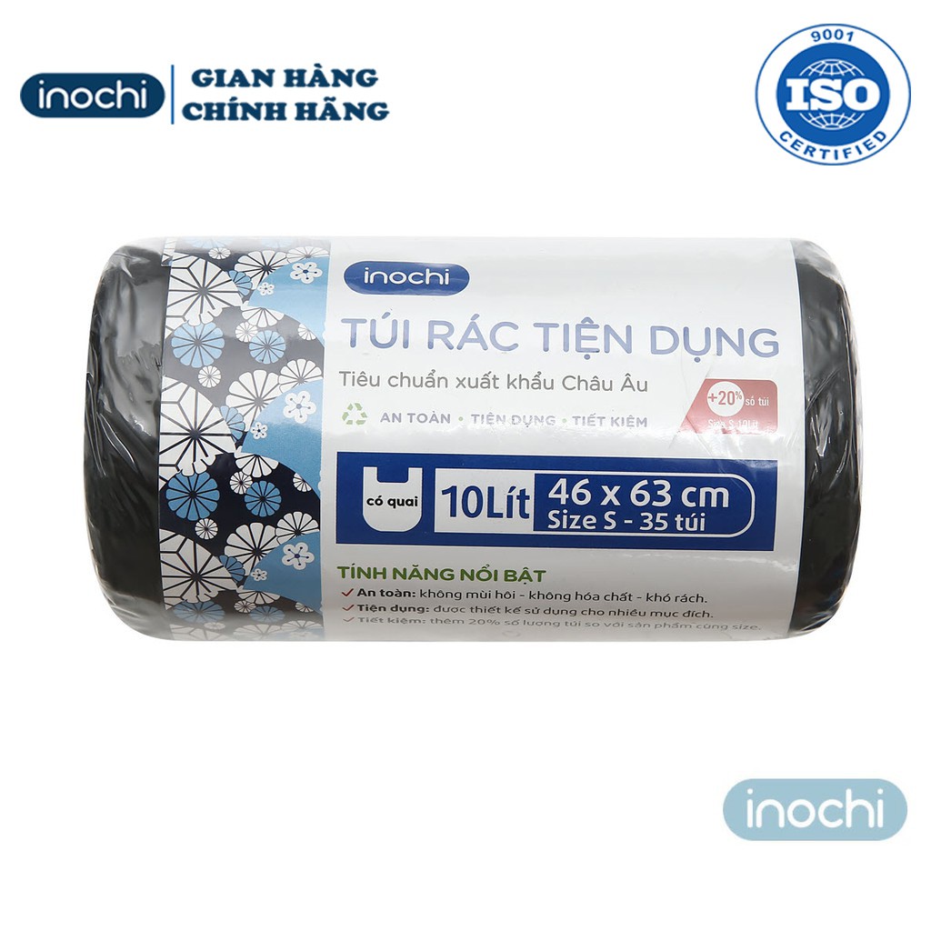 Túi rác đen 2 quai tiện dụng (4 cuộn 1 kg) INOCHI - Tự hủy thân thiện môi trường - Nhiều Size 10L-25L-50L