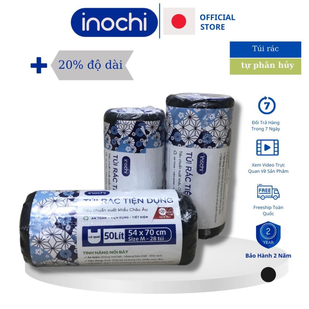 Giới thiệu Túi rác đen tự phân hủy Inochi Có Quai Tiện Dụng 50L Dạng Cuộn Màu Đen Dài Hơn 20%
