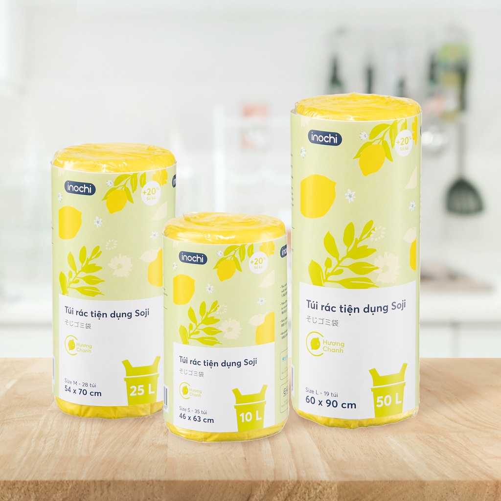 TÚI RÁC TIỆN DỤNG SOJI HƯƠNG CHANH với đối ưu hóa công năng khi sử dụng sẽ mang tới cho không gian sống của nhà bạn vẻ đẹp tinh tế, gọn gàng hơn. Soji – Mang ý nghĩa gọn gàng, ngăn nắp của Túi rác, liên tưởng của sản phẩm giúp nhà cửa gọn gàng, sạch sẽ mỗi ngày. Đó cũng là cảm hứng để Inochi đặt tên cho sản phẩm túi rác tiện dụng.