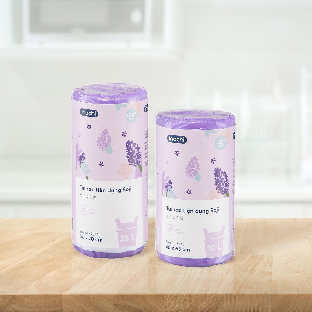 TÚI RÁC TIỆN DỤNG SOJI HƯƠNG LAVENDER với đối ưu hóa công năng khi sử dụng sẽ mang tới cho không gian sống của nhà bạn vẻ đẹp tinh tế, gọn gàng hơn. Soji – Mang ý nghĩa gọn gàng, ngăn nắp của Túi rác, liên tưởng của sản phẩm giúp nhà cửa gọn gàng, sạch sẽ mỗi ngày. Đó cũng là cảm hứng để Inochi đặt tên cho sản phẩm túi rác tiện dụng.