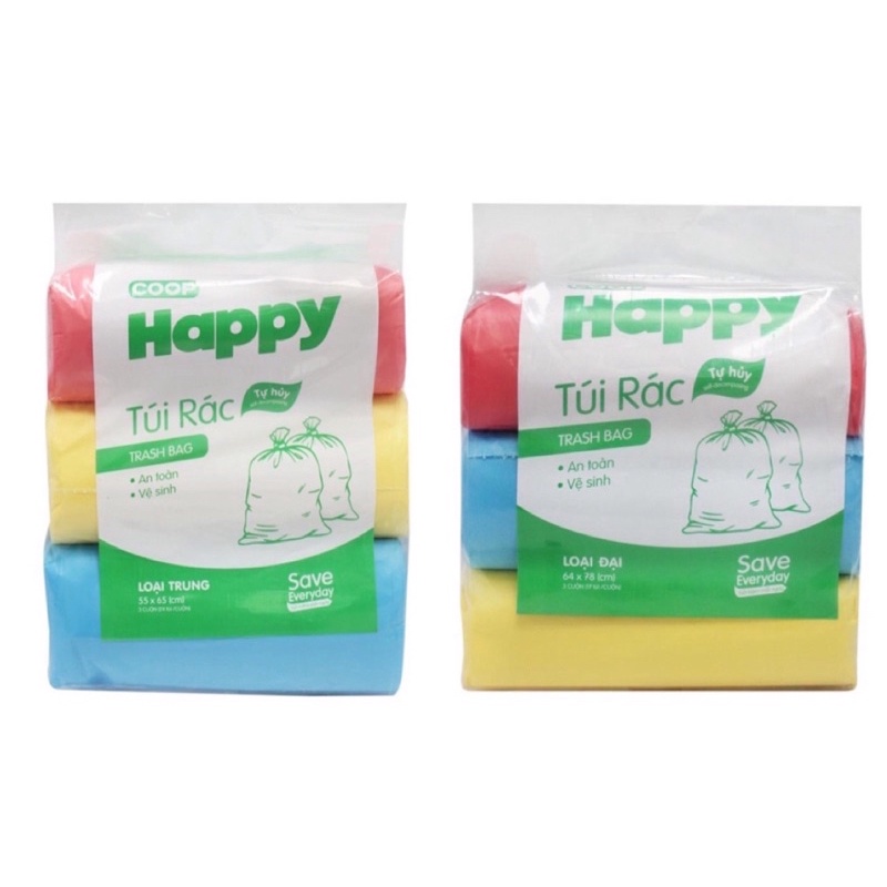 Nhà cửa & Đời sống > Dụng cụ chăm sóc nhà cửa > Túi nilon & túi rác || TÚI RÁC TỰ HUỶ COOP HAPPY 1KG (3 CUỘN)/ TÚI ĐỰNG RÁC SINH HỌCCòn hàng