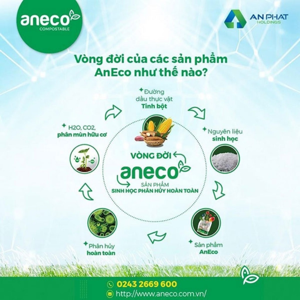 AnEco là sản phẩm vi sinh phân hủy hoàn toàn (compostable) được sản xuất trên dây chuyền công nghệ hiện đại của Công ty CP Nhựa và Môi trường xanh An Phát (AAA) thành viên của Tập đoàn An Phát Holdings.