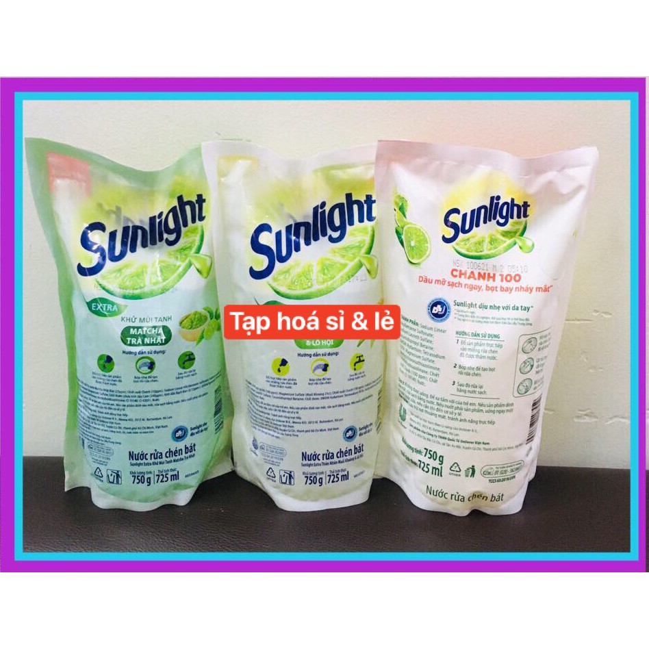 Túi rửa chén Sunlight Trà Xanh, Chanh, Thiên Nhiên 750g