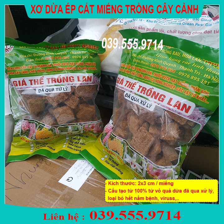 Vỏ dừa được cắt nhỏ kích thước khoảng 4-6cm và được xử lý mầm bệnh rất kĩ. Sản phẩm được dùng để làm giá thể trồng phong lan do đặc tính nổi trội của chúng nên hầu hết những người chơi phong lan đang rất ưa chuộng.Hướng dẫn trồng lan bằng xơ dừa