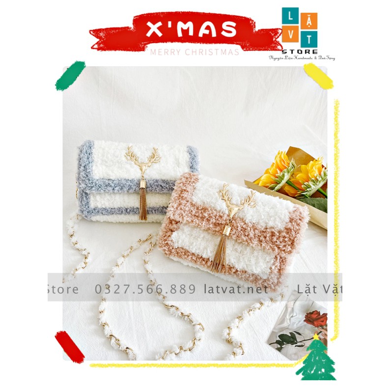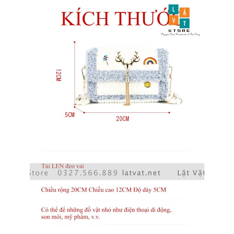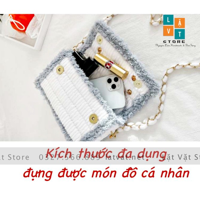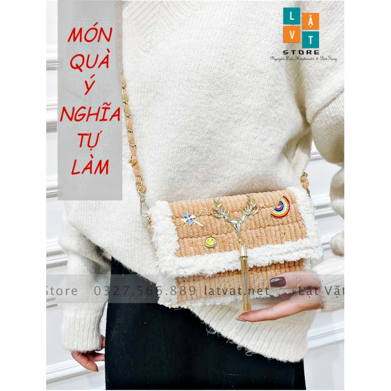 [XINH_RẺ_CÓ HƯỚNG DẪN] Túi Handmade Len - Túi Tự Đan Đầy Đủ Nguyên Liệu Gồm Len Mịn, Canvas cắt sẵn, Dây Xích Chắc Chắn