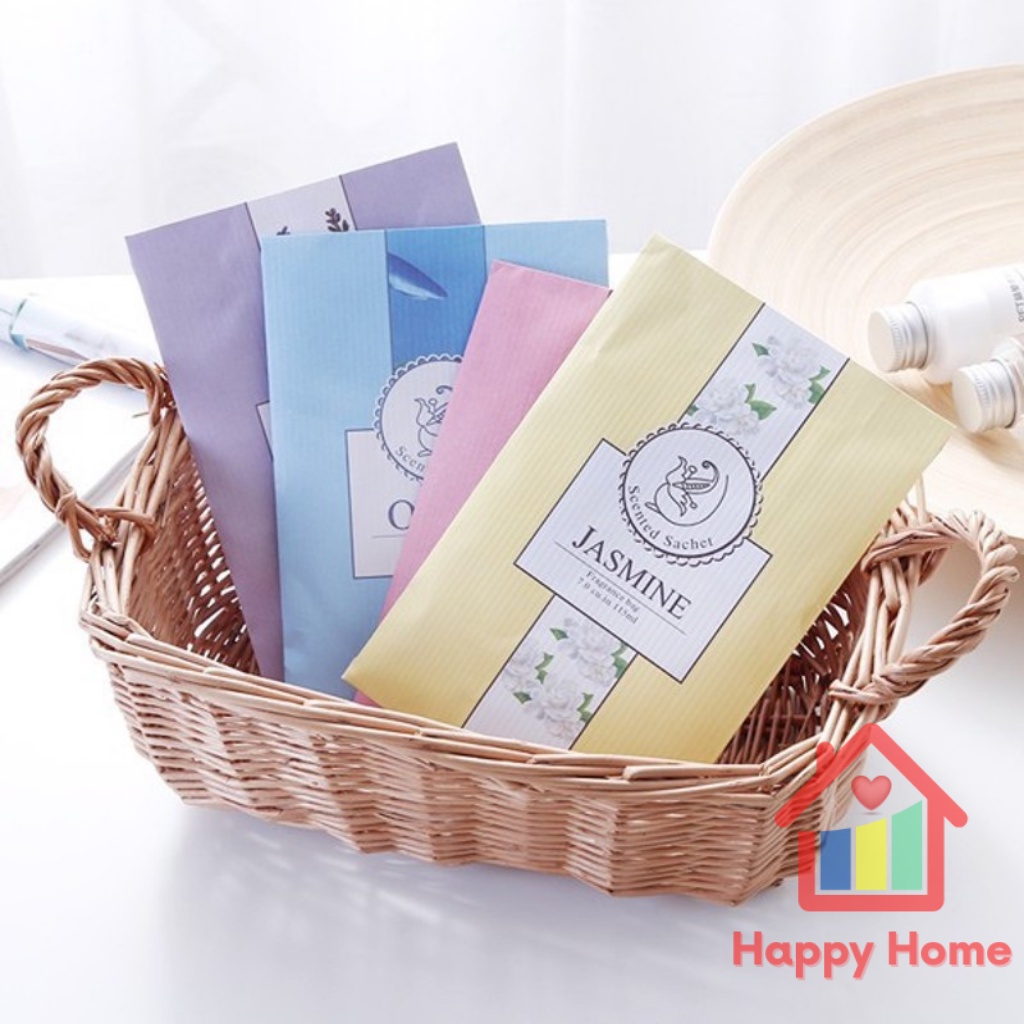 - Túi thơm thảo mộc tinh dầu tự nhiên treo phòng ngủ, gói thơm để tủ quần áo, xe ô tô, nhà vệ sinh Happy Home sẵn mùi cho bạn lựa chọn: Hoa Hồng, Hương Chanh, Lily, Nhài , Lavender, Ocean