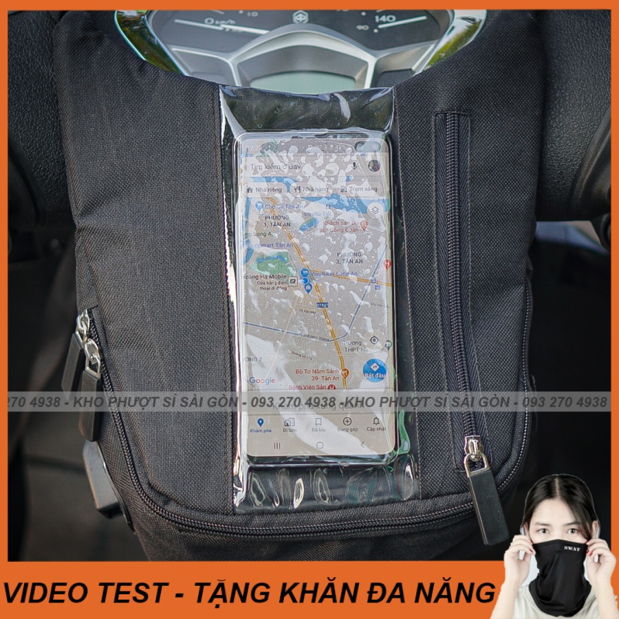 Mô tô, xe máy > Phụ kiện xe máy > Giá đỡ điện thoại || Túi treo cảm ứng điện thoại chạy shipper tặng kèm khăn đa năng chống bụi nắng Swat thun lạnh GrabSo sánh giá ×