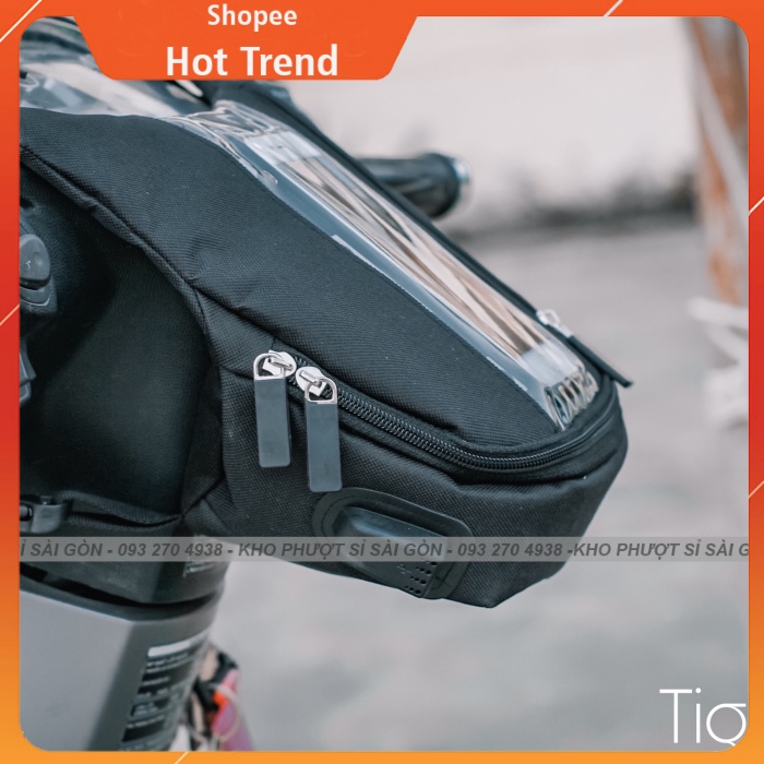 Túi treo đầu xe máy chạy GRAB cảm ứng điện thoại dọc - ngang giá rẻ - Túi chạy Grap đựng điện thoại cảm ứng được