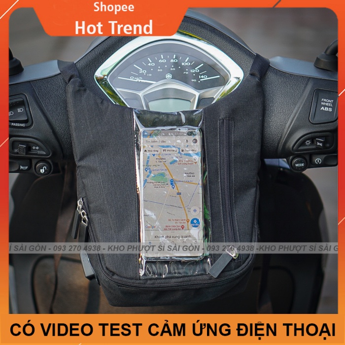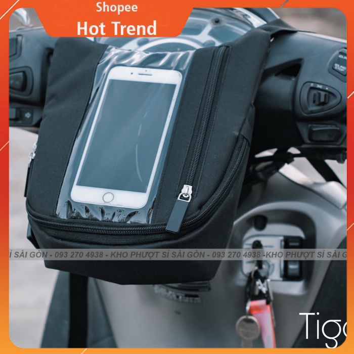 Túi treo đầu xe máy chiều đứng đựng điện thoại cảm ứng được - Túi grap Grab treo ghi đông xe máy chiều ngang đựng dtKhi di chuyển ngoài đường thì trang bị túi treo đầu xe giúp bạn thao tác dễ dàng nhờ mặt túi cảm ứng điện thoại được và treo được hấu hết các dòng xe máy hiện nay từ xe số, xe tay ga, chỉ trừ vài dòng xe ghidong trần như motor thì không treo được