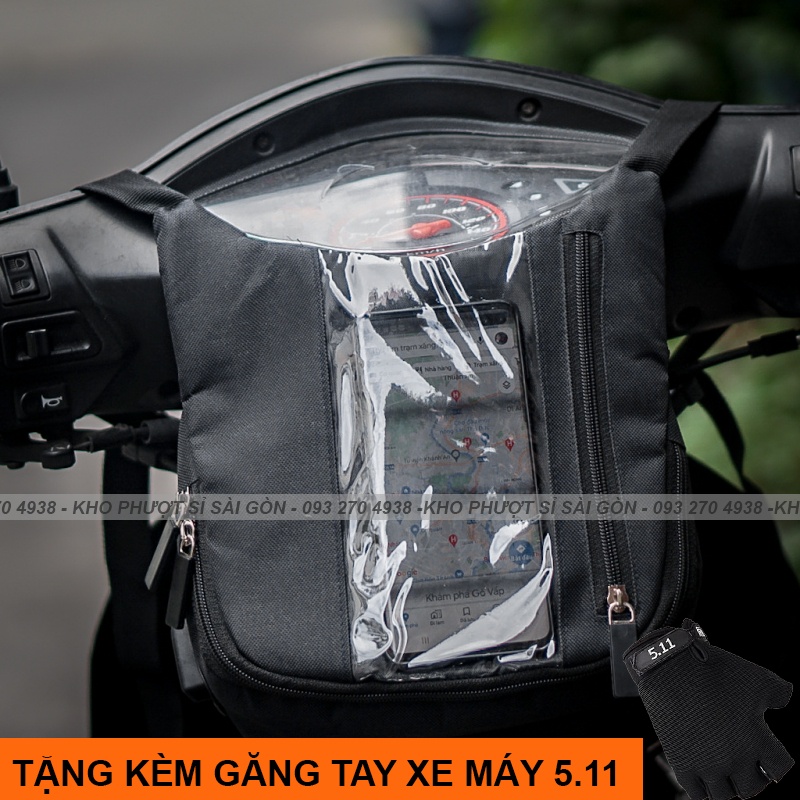 Túi treo đầu xe máy đựng điện thoại cảm ứng được - tặng kèm găng tay xe máy 5.11 - Túi Grab treo đầu xe giá rẻ