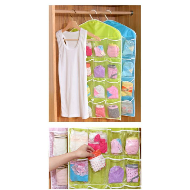 2. Túi có 16 ngăn, có thể treo trong tủ quần áo hoặc treo ở mặt sau cửa ra vào;